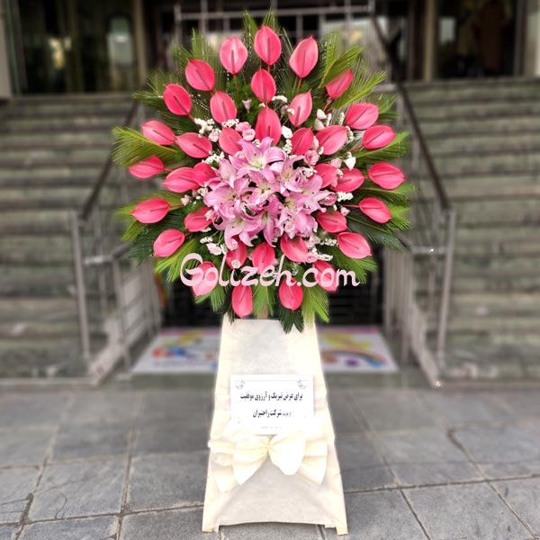 خرید اینترنتی و فوری تاج گل مناسب تبریک و برای آرزوی موفقیت تاج گل عرشیا با دیزاینی زیبا آماده ارسال به تالار عرشیا تهران
